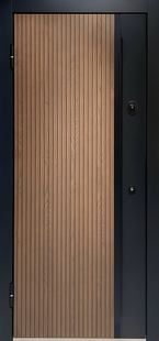 Металлическая дверь с двухцветными панелями МДФ и бугельной ручкой — идеальное решение для оформления жилых и коммерческих помещений. МДФ-панели имеют высокую устойчивость к износу и деформации. Придают двери индивидуальность, делая её гармоничным элементом интерьера. Дизайн-проект подойдет для оформления парадного входа.